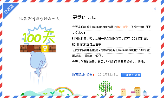 在本吧已累计签到100天了,截图留念一下下