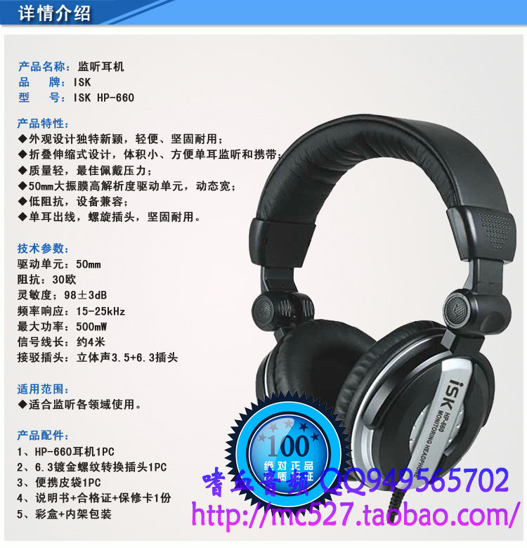 ISK HP-660监听耳机 详情 参数 介绍