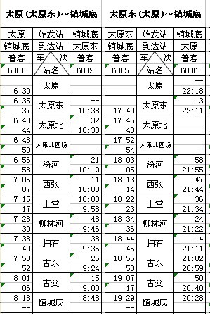 本月21日及以后,因太原站能力紧张,太原—镇城底4633/4次运行区段调整为太原东—镇城底,镇城底—太原6802次终点站改为太原东站,太原—镇城底6805次改为由太原东站始发。太原镇城底间6801次及6806次不变。