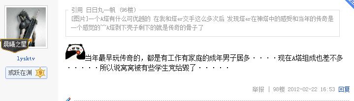 硬是和我辩了两页,认定穷学生和社会青年玩不起传奇。此是原帖