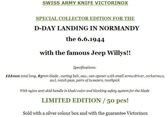 登陆日威利斯限量50把纪念刀猎手(Jeep Willys D-Day special edition)的图案: