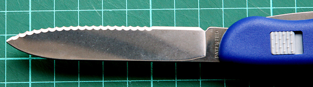 2/3锯齿主刀两面都有蚀刻文字,正面是“瑞士芝士刀”的四种瑞士官方文字,反面是瑞士芝士协会的官方网址