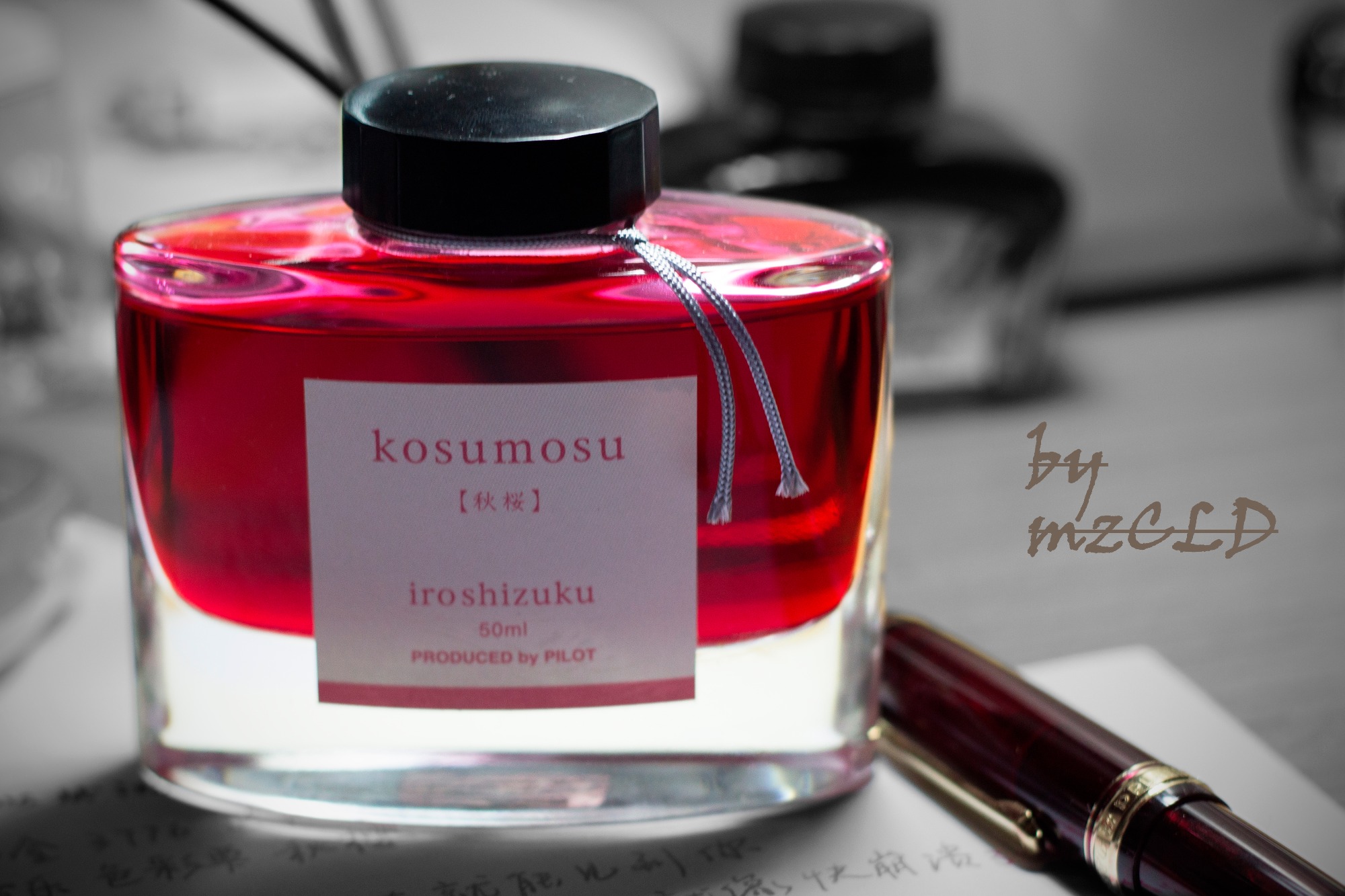 第一次收到这支酒红色的笔就觉得要配红色的墨水,于是就入了色彩雫秋樱。本来应该是红叶的红色更加合色,但着实喜欢秋樱的名字,也不知道是谁把kosumosu这大波斯菊译成秋樱的,真是坑我等樱控啊。没办法的说~