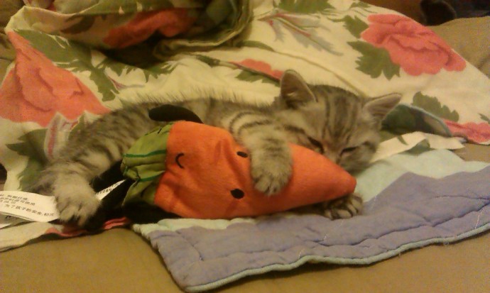 我想说,其实它也很讨人嫌,,,天天跟我吵架,,天天惹我生气,,,我们俩天天打架打到室友都由看不下去到习以为常,再到下注这个回合谁胜谁负,,,,,最后我吵不赢它,就把它仍到客厅!。。。虽然我有的时候会忘记喂它,饿的它在我一进门的时候抱着我的腿就开始啃,还一路跟着我从客厅到卧室再到厨房,然后心满意足的吃得饱饱的。。。。虽然我天天吼它。。。可是它是我的猫!