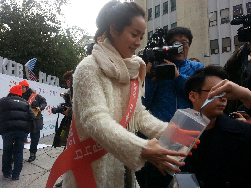 大暖女总是会如此啊,与捐款的人们接触的那只手总是不戴手套的~