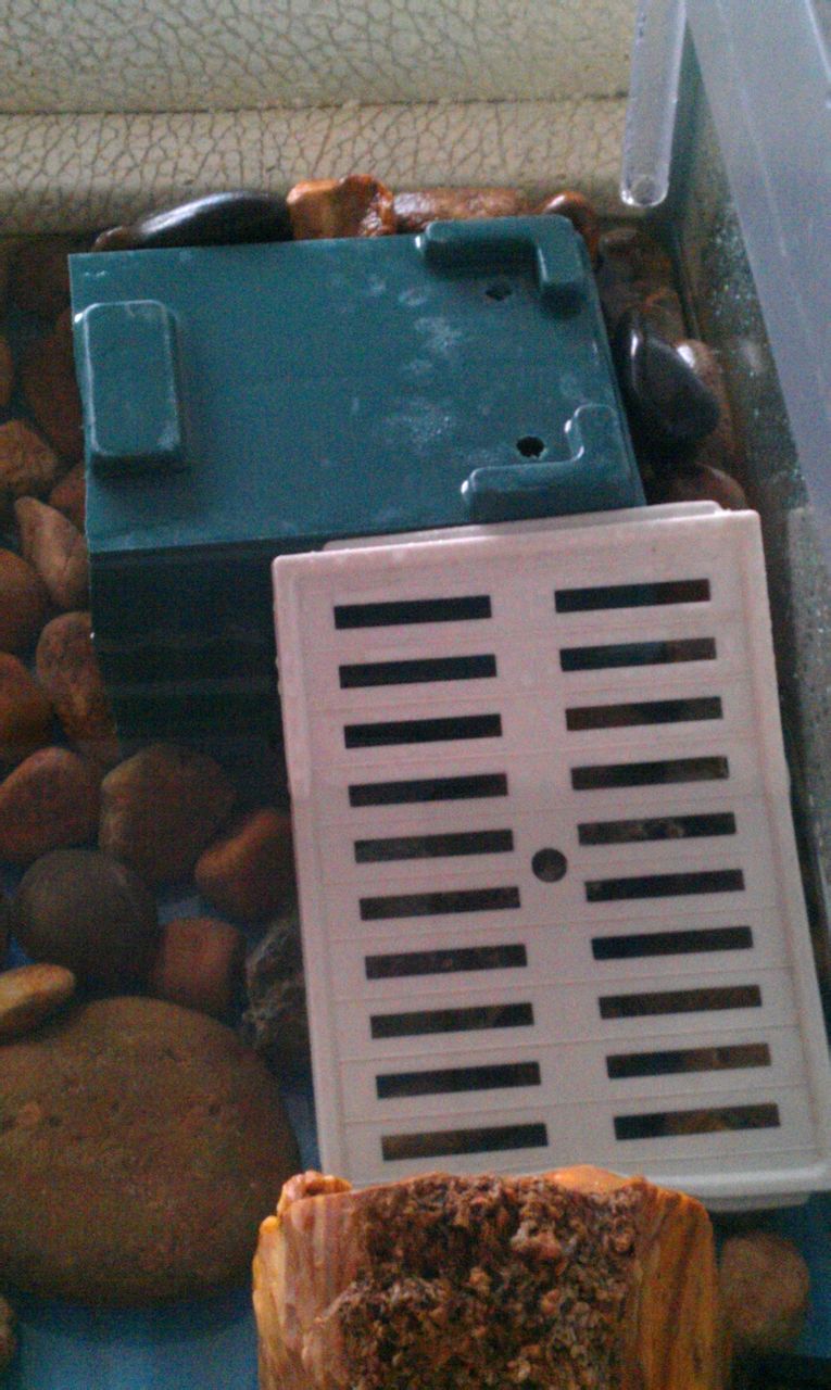 蓝色盒子上是平台,白色的是给乌龟爬的,盒子下面是空的,鹰嘴好像喜欢阴暗点的,搞个窝。