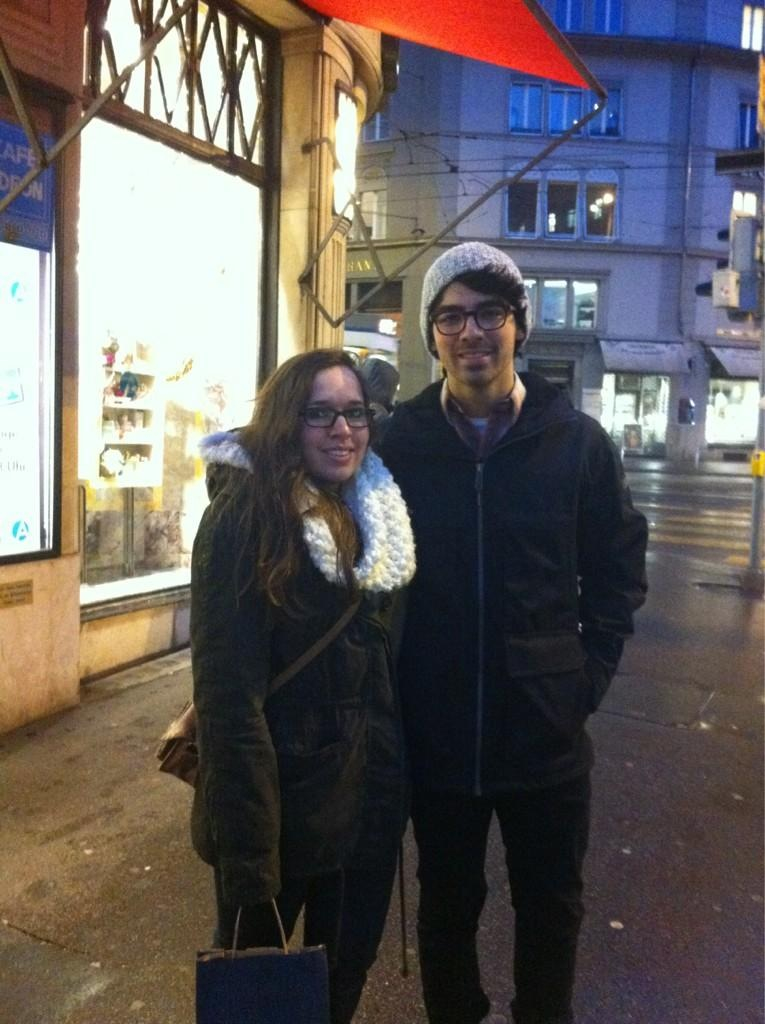 From @SmilingZayn: I met Joe Jonas in Zurich with his girlfriend Blanda! Me and my friend live in Zurich and were looking for him all over the city. We walked past the Odeon Café in Zurich and saw him through the window with Blanda.