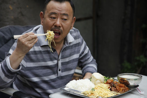 你看老潘吃的多香!