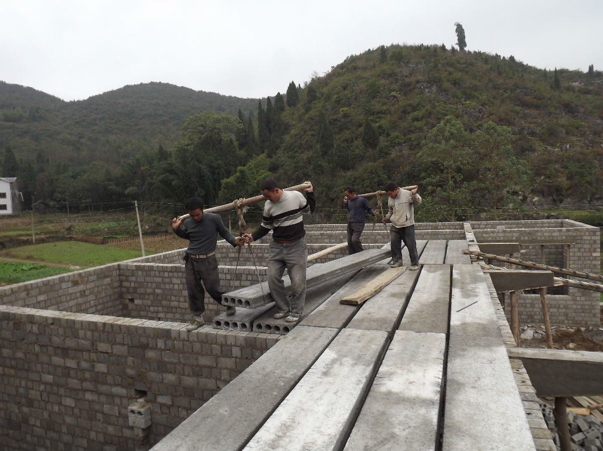四个人抬一块楼板太牛了