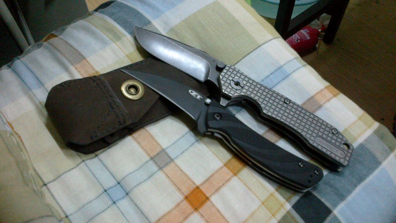 大的那把是国内刀匠做的,现在只能求二手了,也不知道还会不会出,论坛挺热的一把刀,那把爪子是ZT的一款刀,中文名好像叫零误差,两把都是论坛收的,两把价格呵呵跟杜哥的S1差不多