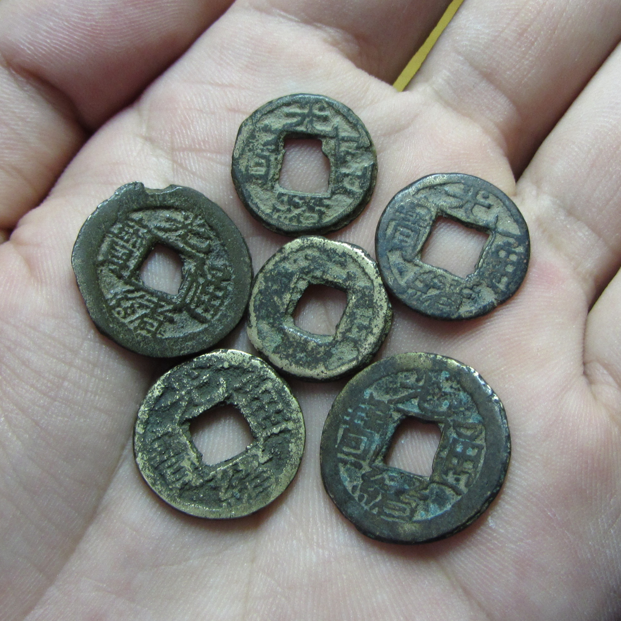 我原来有俩比一般铜钱小一半的方孔铜钱。只是现在找不到了。如果看到图我肯定认得。但但不是这正这么大的方孔的。那一种方孔比这小。市场中我还没有见到过。