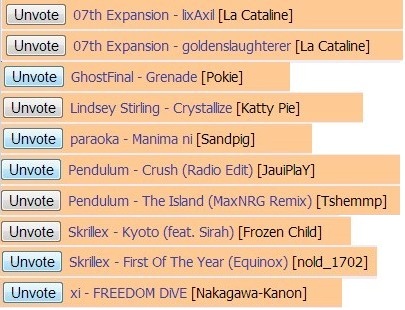 有印象的我记得我选了fd rog ntr的初音 沙包猪的manima ni 忘了谁的恋远距离爱 其他记不清了