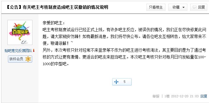 为什么我们吧主没被考核?