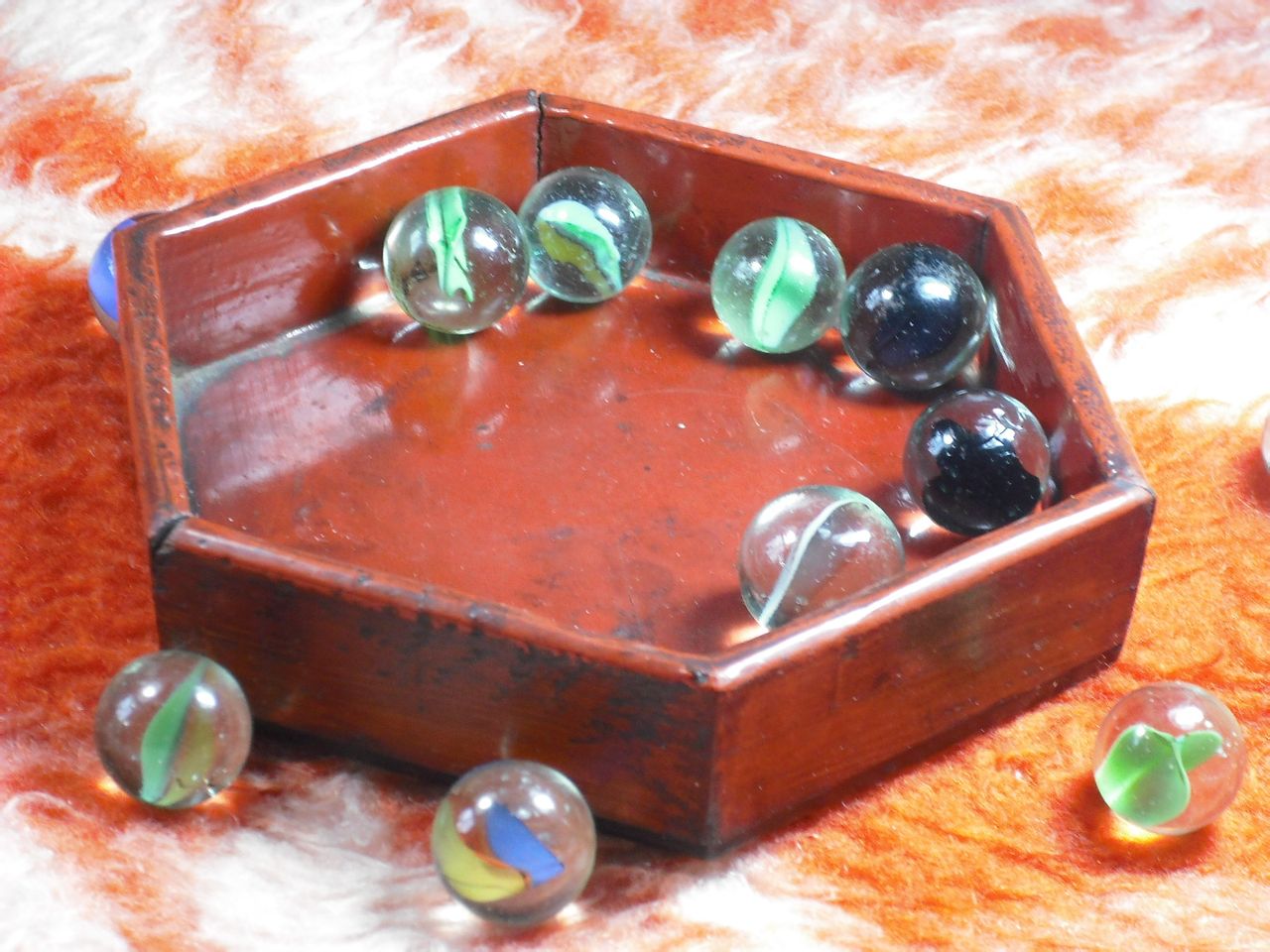 一个小木托,一个小漆盒。
