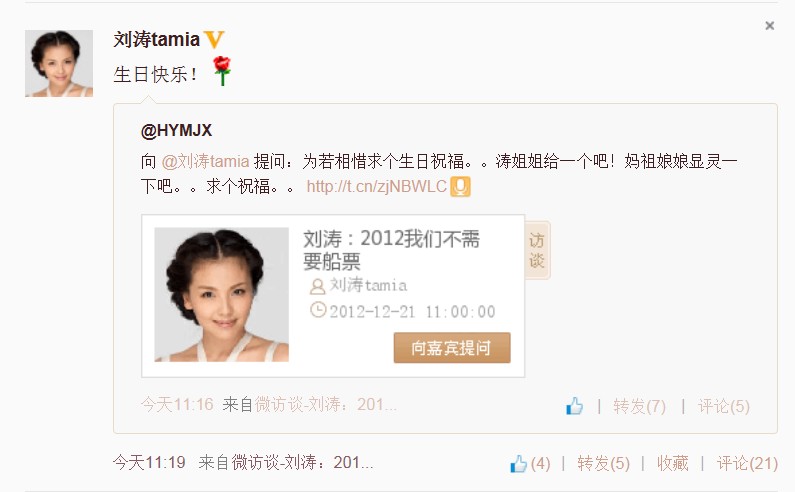 从认识到现在,我们一起讨论过涛姐,讨论过涛图片,说这个怎样那个怎样。喜欢这个还是喜欢那个。。你发帖的我都支持,你发微博我抢沙发(虽然没有每次都抢到)微博头像,