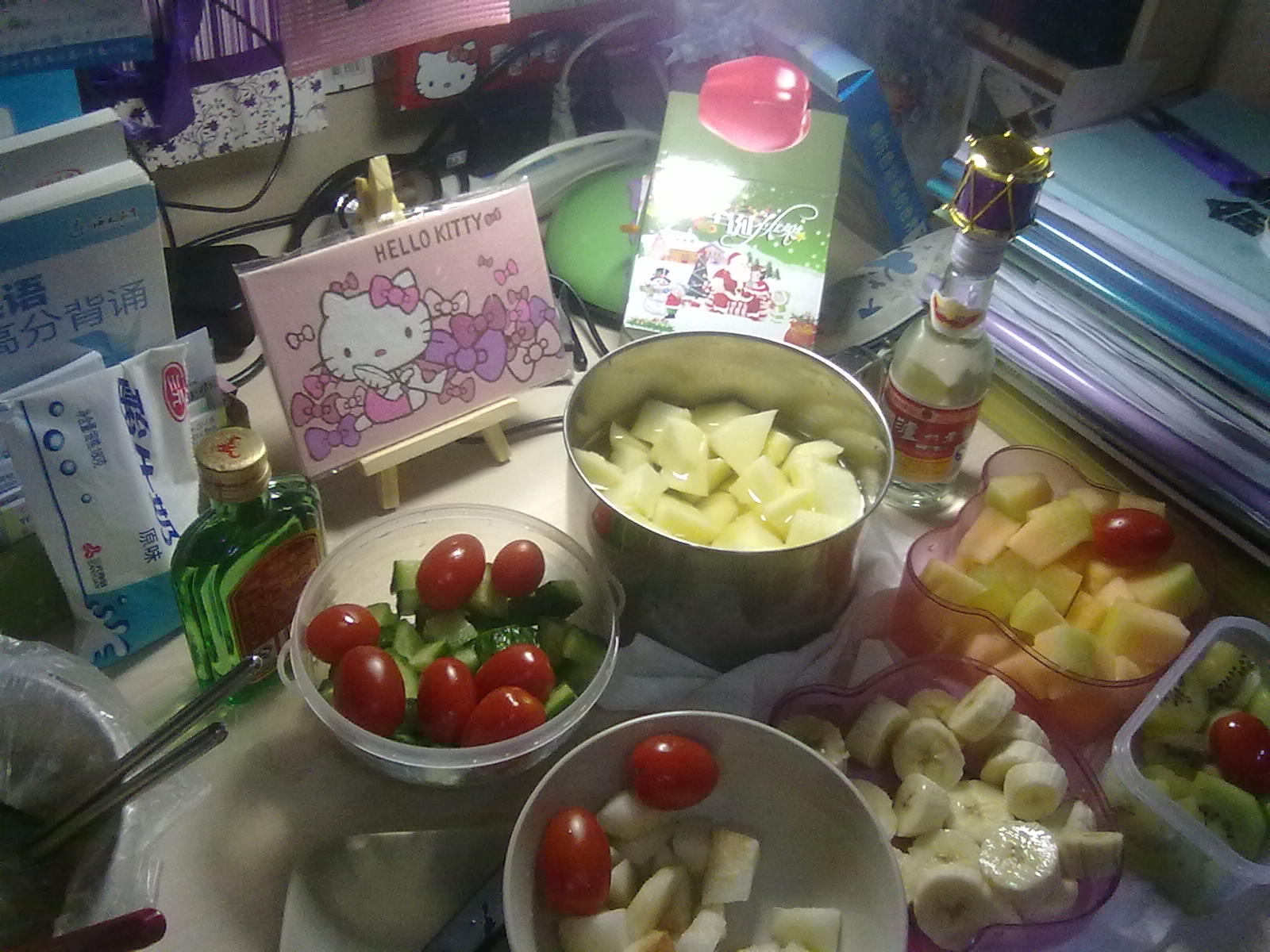 回复 司马昶明 :那盘是哈密瓜 苹果在大铁饭盒里泡着水 要不变黄了