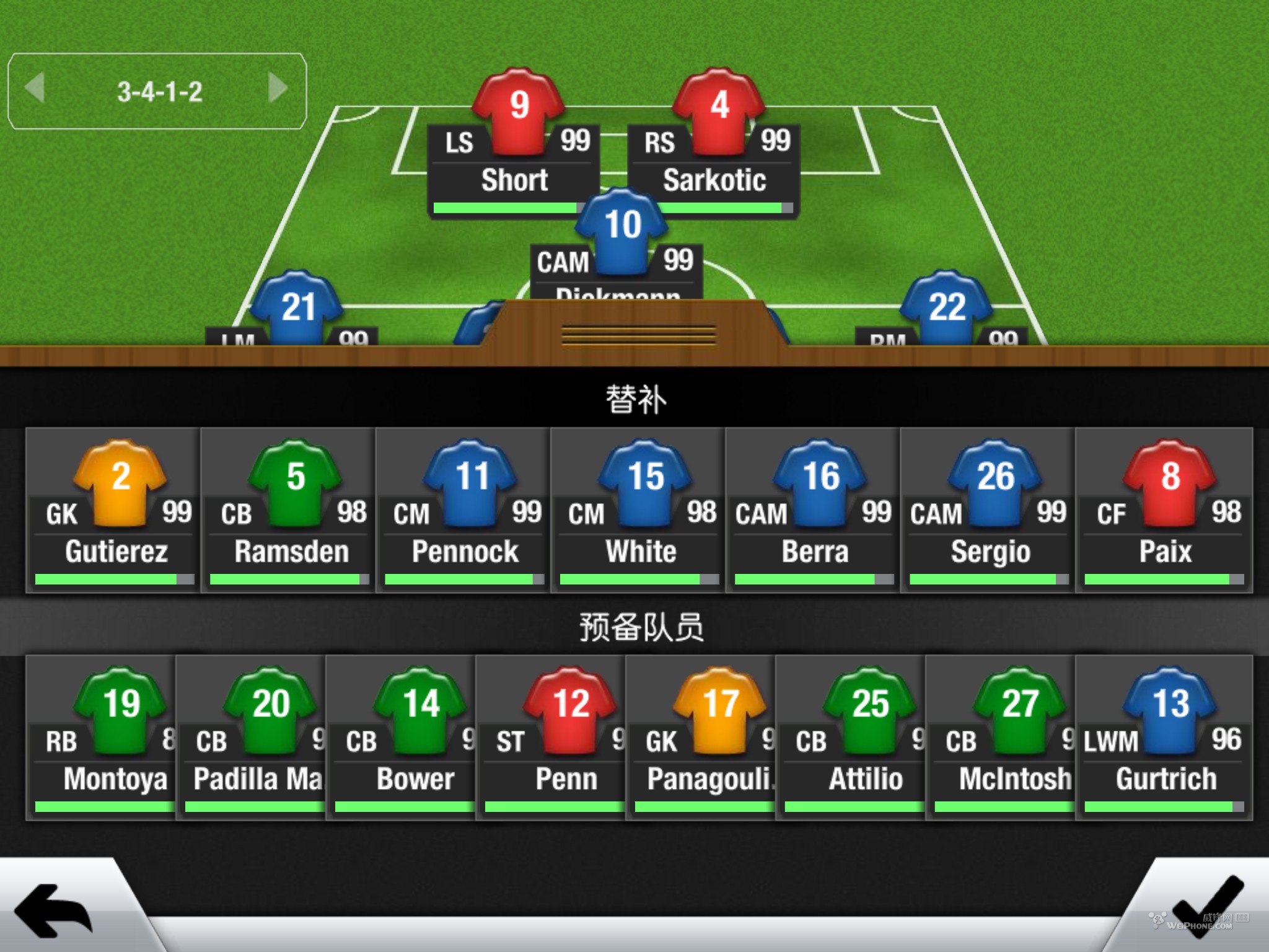 但是我发现你一旦红牌下去个人,整个球队都活起来了,那叫一个进攻犀利阿。你们玩的转的话试试造一两张红牌把哈哈哈。我估计是fifa有此类平衡系统把,包括我在ut用铜队踢比赛踢强队,反而好踢,虽然球员不行但是我估计系统有点平衡强队弱队的。这只是我的经验把了。但在manager中,还是强队踢的爽,球员意识和速度和花样各种犀利。