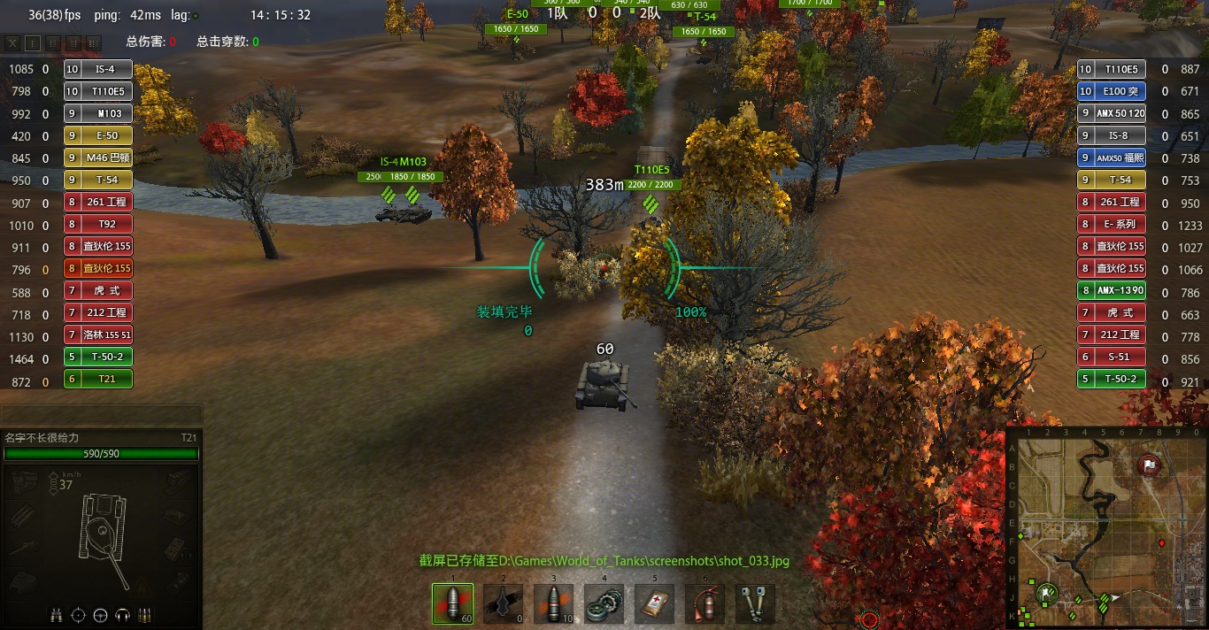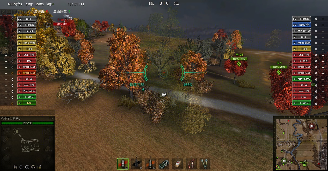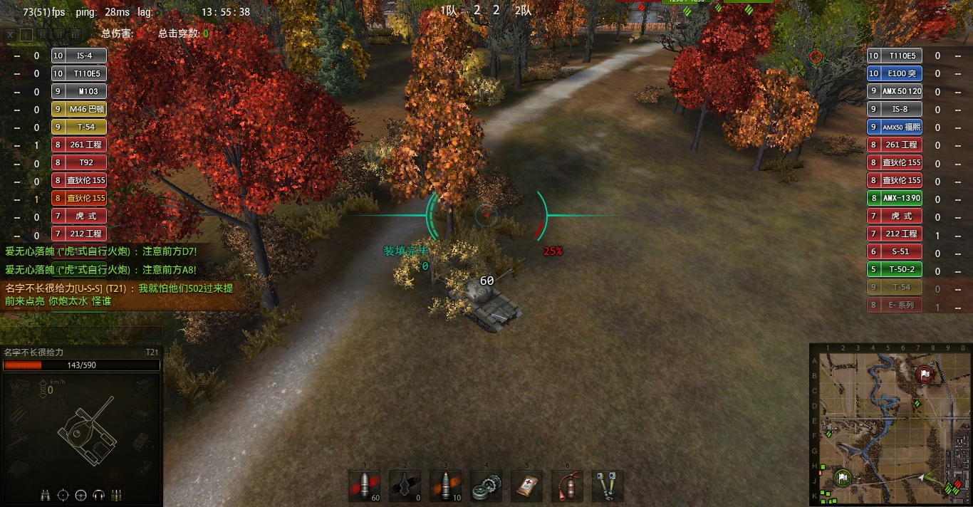 由于T21这车刚开始玩各种不熟练,感觉手感与霞飞差了很多.所以不敢轻易去狗斗 而且楼主的风格也不喜欢狗斗.而且火炮比较多我也不愿意被点亮,刚开局不希望这时候就牺牲,我觉得我已经尽到自己的责任.