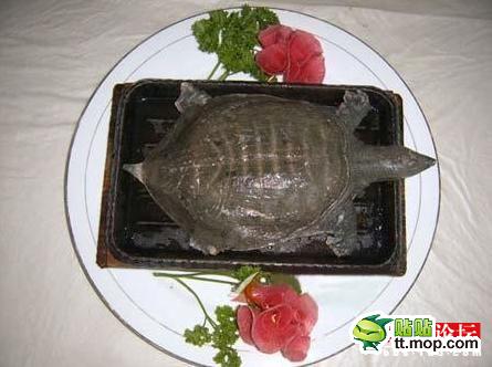 5、铁板甲鱼。将鲜活的甲鱼放在有调料的凉汤中用慢火煨。甲鱼是活的,当水渐渐升温后,甲鱼就会因为热而喝汤,调料自然就进入了甲鱼的体内。渐渐火越来越热,看着锅中甲鱼痛苦的翻滚,举箸之人无不兴奋异常。最后甲鱼熟了时,外面的汤和甲鱼喝下的汤,使甲鱼肉味中都有汤的味道,据说鲜美无比。