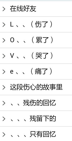回复 zyk5113038 :分别是闺蜜 情侣 小学 初中 高中 大学 贴吧 家人 每一个组对应一个词语 哈哈哈