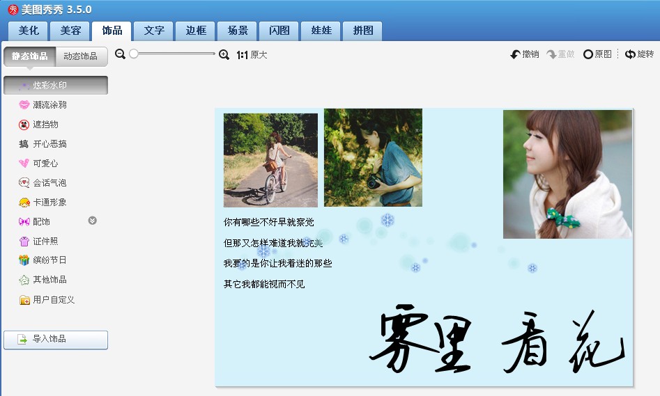 6.最后可以进去饰品区-炫彩水印 加上水印让图片看起来更美