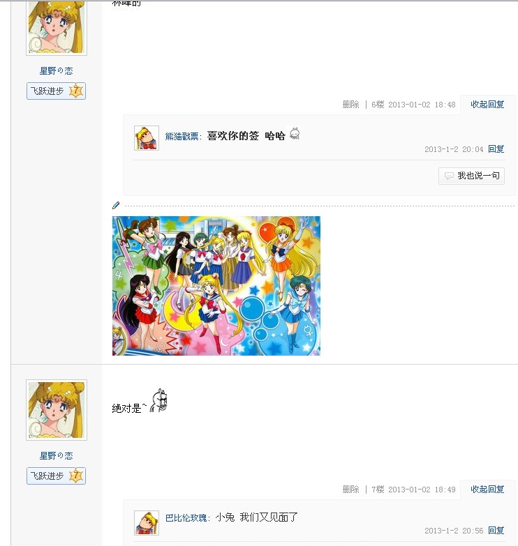 ......我晕~~~每次去别的贴吧都见到SAILORMOON到处被毁的迹象.....往年是那个很难看的表情,我想09年呆过贴吧的人应该知道那个猥琐的表情~~~