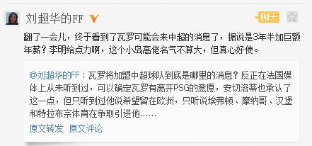 本人在微博上关于瓦罗和内内对法甲专家刘超华的提问