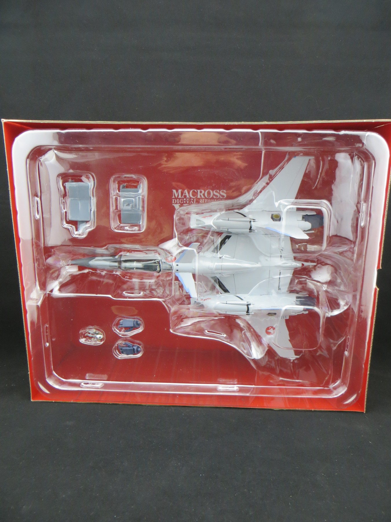 开盒内容一览,VF-4G本体一个、可动手掌一副(VF-4G本体上的则是固定握拳手掌)、驾驶员一个、专用支架配件两个