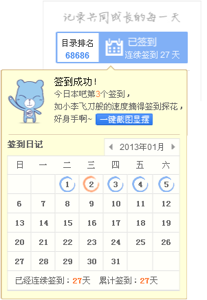 连续在本吧签到27天,晒下签到排名照,看看我神马水平