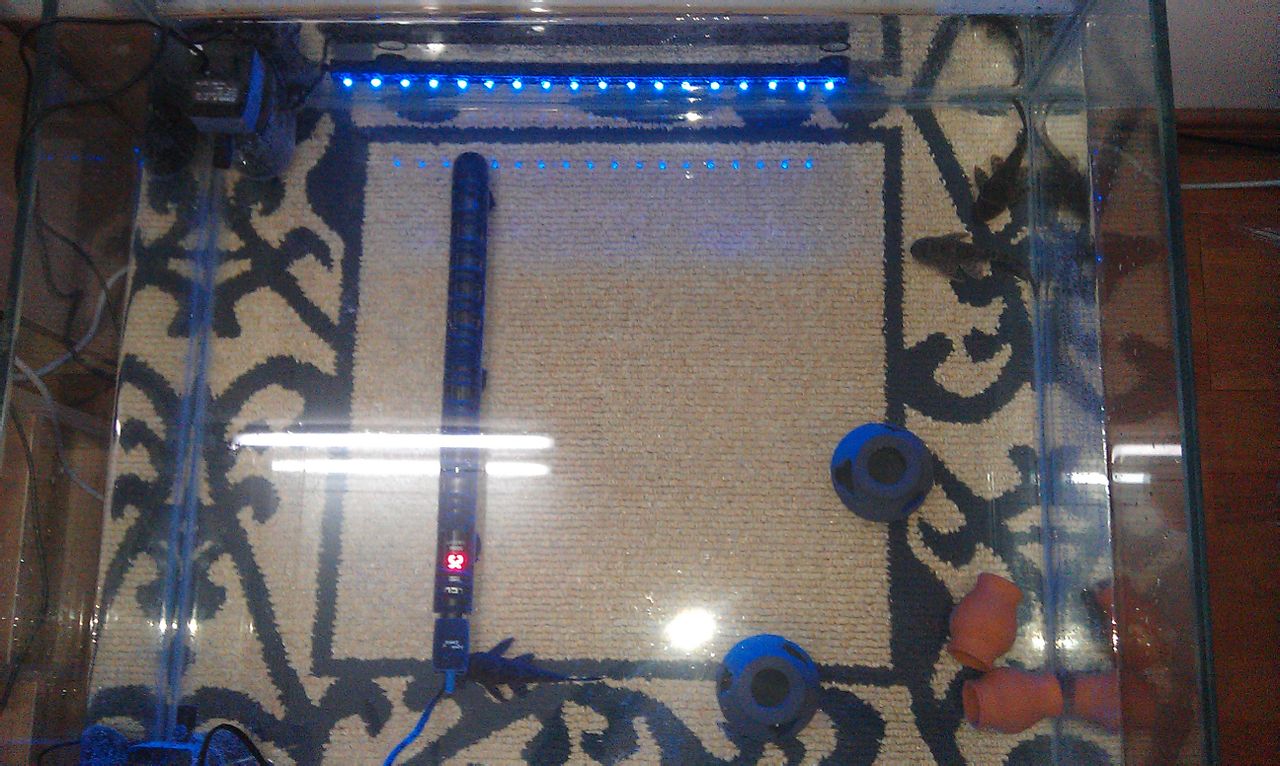 最近订做了一个缸 800长*700宽*400高 裸缸 买了一个LED潜水灯 2个艾柯500W的加热棒 2个30W的潜水泵 原本是以前有个1米的佳宝 养了一些慈鲷的 现在弄个方缸 不知道养些啥了 关键是做完就后悔了 12个厚的超白玻璃 加一个10公分厚的大理石基座 就100多公斤了 因为现在住的地方是老楼 预制板的楼板 预制楼板每平方能承受的重量在250KG以内 原本我打算放在茶几的位置的 现在都不敢放了 改放在靠墙的位置 连水带缸加基座0.56平方就快250kg了 真怕楼板受不了 水只放到22cm的位置了 没过潜水泵就停了 同志们帮我研究研究 基本不再加东西了 比如沙子之类的 肯定是不加了 基本就是裸缸 样些什么比较好?