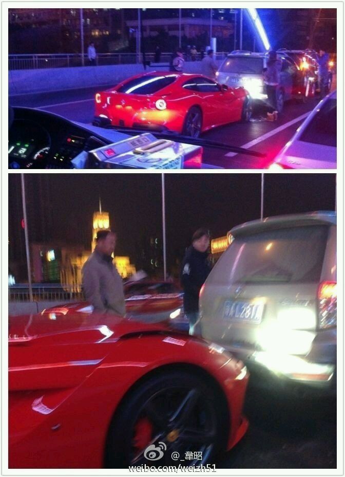 以后前面这个车主可以炫耀了 我的车可是跟法拉利撞过的