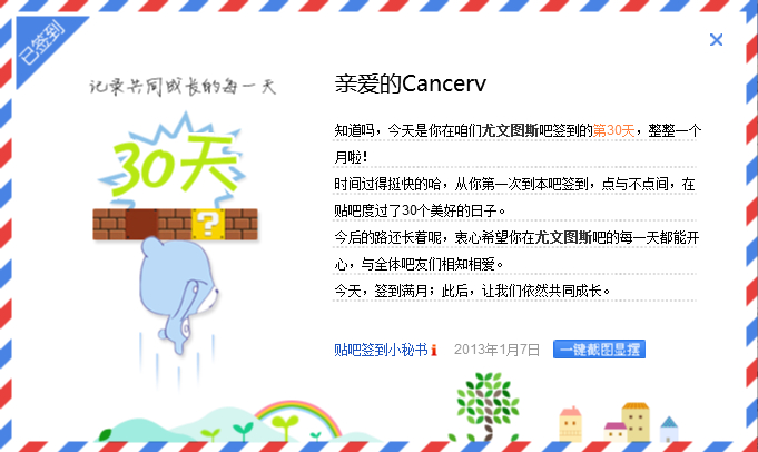 在本吧已累计签到30天了,截图留念一下下