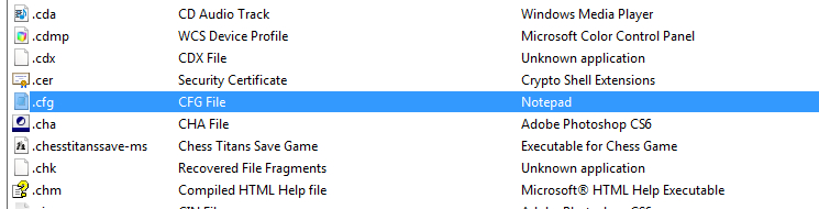 HKEY_CURRENT_USER\Software\Microsoft\Windows\CurrentVersion\Explorer\FileExts\.cfg