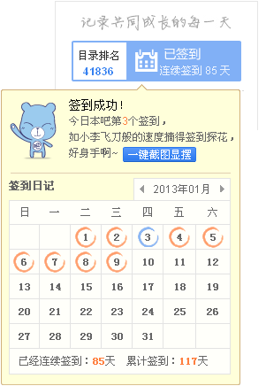 连续在本吧签到85天,晒下签到排名照,看看我神马水平