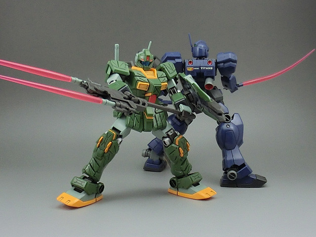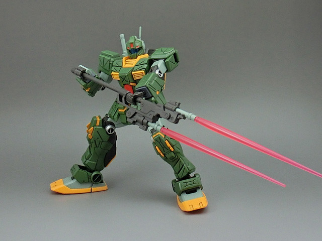 打击型吉姆最大的特点,便是这把把两把光束军刀(Beam Saber)固定于重新设计的活动架上的长矛状的格斗武器