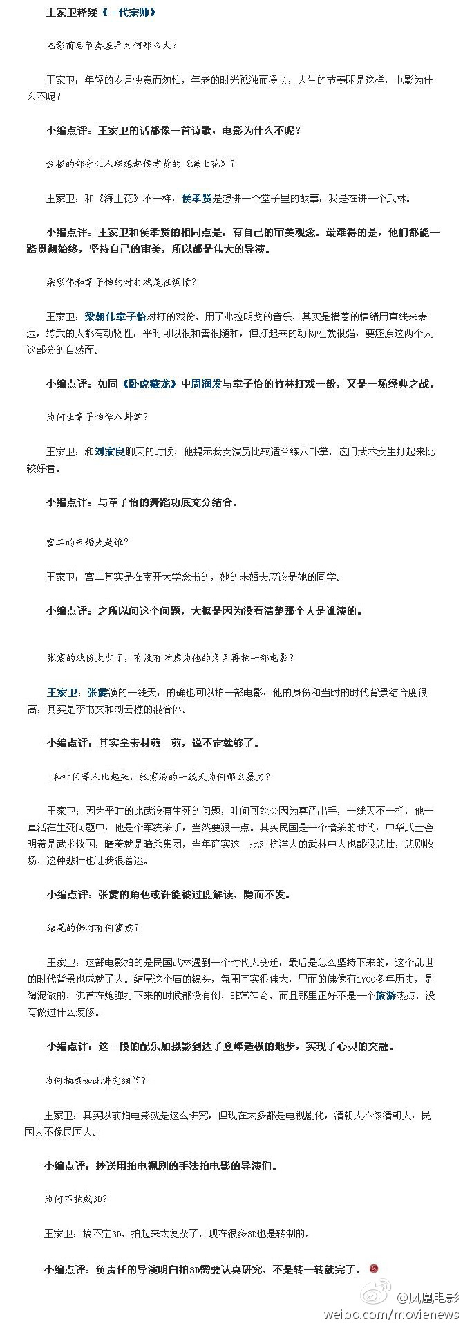 【转】【剧透慎入】王家卫释疑《一代宗师》