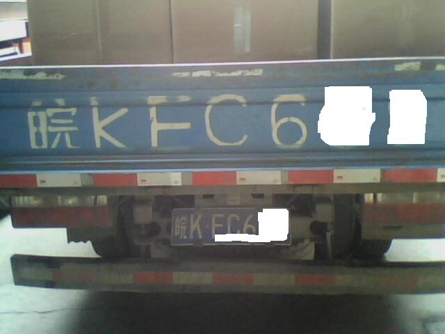 另外,附送一张前两天来我们公司提货的货车的车牌(后面2位数被我涂掉了,你懂的),乍一看以为是肯的鸡公司的车,哈哈......