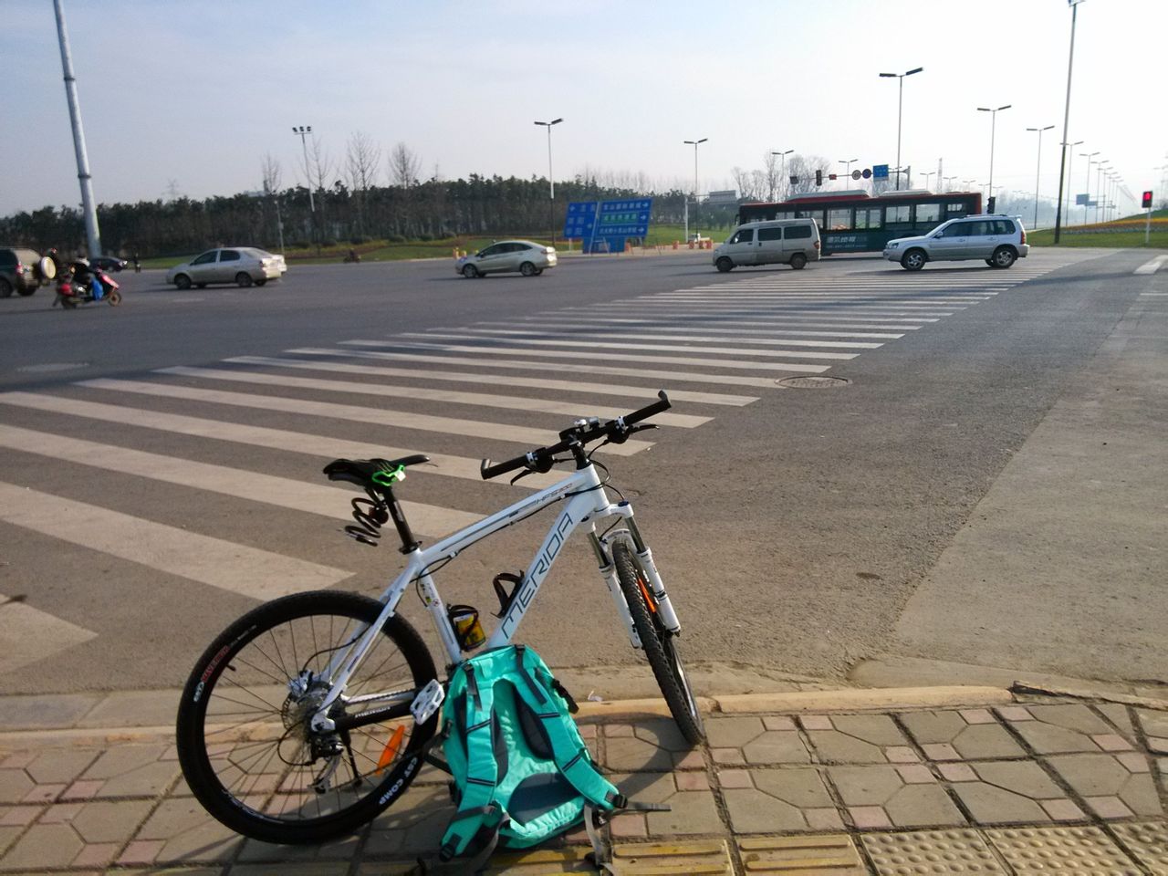 经过一段沙石路,感觉前叉蛮给力的。和以前骑同事的山寨车完全是不同的感觉,不知道是否心理作用