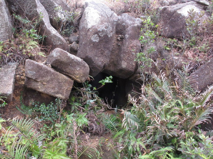 正午时分,一人多高的洞口终于阴怖地敞开在我们眼前,黑不溜秋的深处似乎有着嘈嘈切切的声音,如历史的风口欲说还休。嘿,呆会儿我们就进去跟牛鬼蛇神约见了。先吃饱撑住吧,我们在洞口前各自拿出食物摆在地上分享。这里曾是老百姓当年上来给日军兜售蕃茨、花生等农产品的小市场,龙溪村的共齤产党员曾木信(音译,解放后当过副区长)曾经装成小贩到这里侦察。常说日军抢掠成性,老百姓还敢与之交易吗?的确如此。日军初来时穷凶极恶,抓来许多村民挖地道,烈辉的伯父后半辈子驼背就是因为那阵子给日军挖地道时被他们的枪托打弯的,不然我们就不知有这工事了。最遭殃的也是山下周围的村庄了,地道挖好以后,日军到处抢夺物资,在山上屯积粮食。有一次,建茶村曾姓人家娶亲的花轿经过竹篙岭下,日军得知后疯狂