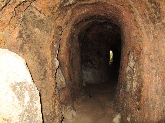 又是半个钟,地道里边除了用于军事堵塞的大块石头及避让的泥窟以外,一干二净。有时,我停留原地察看地道墙上挖出置放油灯的小坑,心想那些挖洞冤死的乡民是否魂游故地,是否会来拖拽我的衣裳诉苦。日本军人呢?为何没有留下什么值得惊奇的罪证?我们还是不死心。又有出口了,前面的人出去透气,我在里边多呆会儿,好好享受那种死去活来的体验。