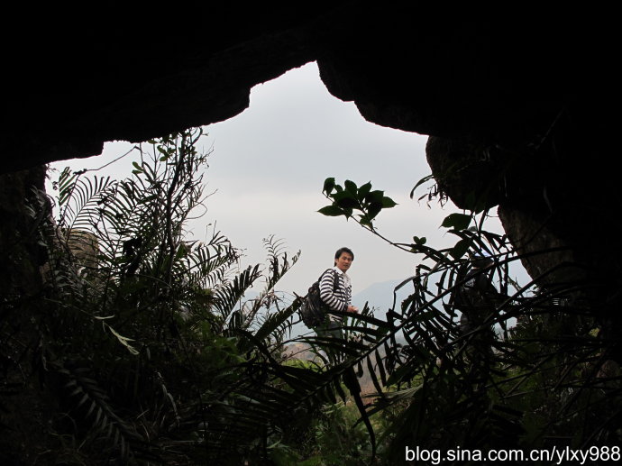 钻出洞口是另个山面,我们一时处于飘渺无语的境地。缀满石头的山岭无处不在,莽荒连绵,烟雾缭绕,一派奇崛的风光!山窝里头偶尔有小块小块的梯田以及古代墓葬的旧迹,莫非藏匿着宝楼山顶洞人活动的信息?我们暂时放弃文化遗址考古罢,兴趣的焦点还停留在钻洞,地道似乎有着比之更多的诱惑力!于是,我们又返回,钻进去寻找另条分叉。刚走不久,前面传话要压低声音。我是屏息的,奇异还是没有发生。“有蝙蝠”,前面的人轻指着洞穴上面。这些黑色的小家伙倒挂着没有一点动静,我给它们闪光拍照也不还礼,不知是假寐,还是真睡?地道越来越窄了,一阵乱石过后,我们需要往斜坡上爬,取下背包向前推,仅容一个人匍匐前进,我再无法拿着蜡烛,干脆看着前面微弱的光亮爬行。空气真的越来越浑浊,莫非闷气的临界状态来了,我不知前面有人倒下没有?嘻哈,紧张的快乐!大约过了几分钟,前面有人站立起来了,狭境终于摆脱,空气稍为好些。