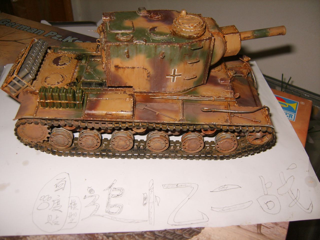 的教学贴子!因为我这个也没完事,不知道什么时候能做完!所以重开个贴! 全车油画项目刚完,因为米格土没到货所以没上消光!看上去油油地,给大家做KV2另外重口的版本吧!