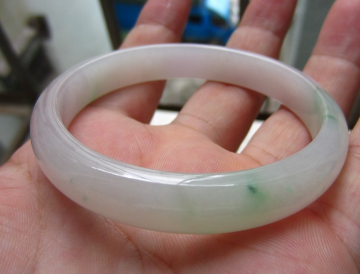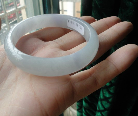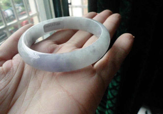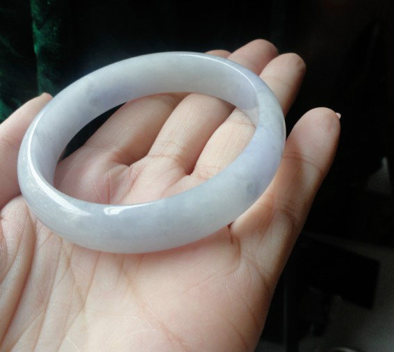 温婉秀气的春彩镯子,淡淡的绿色,淡淡的粉紫色相得益彰,整个镯子都是带色的。底子细腻均匀,不见晶体,有色的镯子中,有这样的种头已经很不错了。无纹无裂,无棉,无瑕疵。尺寸:55*11*6 价格:6888元