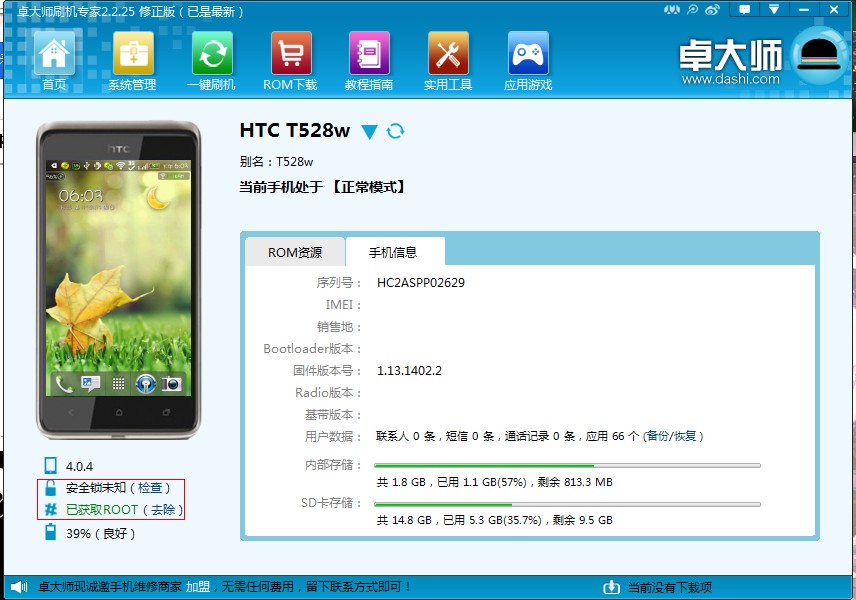 总之就是检查过后,安全锁未知会变成S-ON 然后旁边有个解除安全锁还是什么的` 点一下等手机重启就好