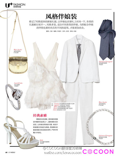 看腻了风格迥异的新郎礼服,让伴娘也在婚礼上时尚一下。COCOON女装素雅的白色搭配,是伴娘的经典选择。蛋糕裙式的造型,让伴娘俏皮可爱,有别于新娘婚纱的端庄典雅。优家画报 8月刊,时尚编辑推荐COCOON女装白色蛋糕连衣短裙为伴娘服,做伴娘的姑娘们有福了。