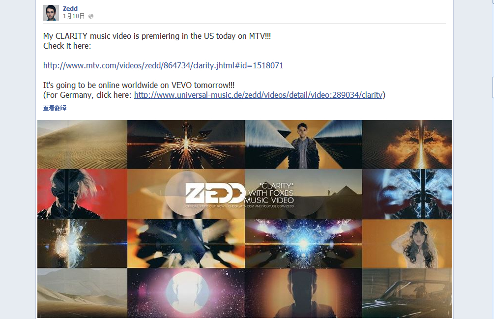 zedd的脸书更的很勤 楼主辛苦了