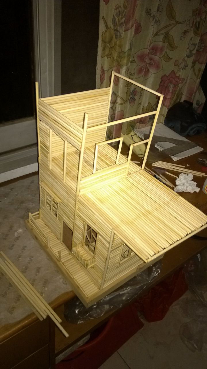 回复 没有值不值得1 :竹签是用来做窗户花型的···还有内部的一些家具··房子都是筷子··要是筷子沾的缝隙太大就用竹签遮盖下
