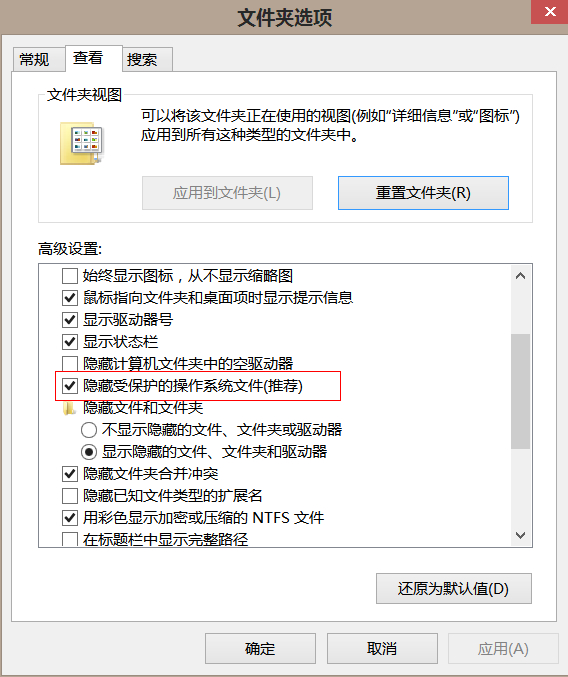 隐藏了 受保护的操作系统文件,你看不到的