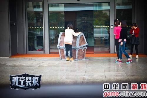而在众人好奇围观的时候,终于有人按捺不住心中的激动试图打开宝箱一睹玄机,而出乎众人意料之外的是,从宝箱内突然出现了一名手拿鲜花身穿《时空裂痕》服装的年轻人,他挥舞手中的鲜花,并大声对着暴雪中国门口大喊“WOW,我是你的时空裂痕!”。