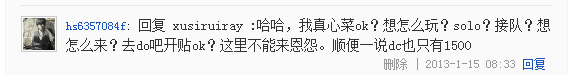 大家看好这条菜狗什么时候要和我solo的,现在什么时候,真心逗b.一直到昨天 都各种不接.今天叫的非常欢.十成是找到枪了今天我在这说明,如果这条菜狗敢和我周1到周五晚上每天打一盘,5局三胜,输了叫爹.谁怂谁儿子.爸爸就问,你TM敢今天找枪,老子和你约5把 你TM 要天天能找到枪老子就叫爸爸 懂?1500-菜狗真心智商下限